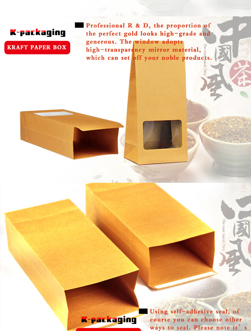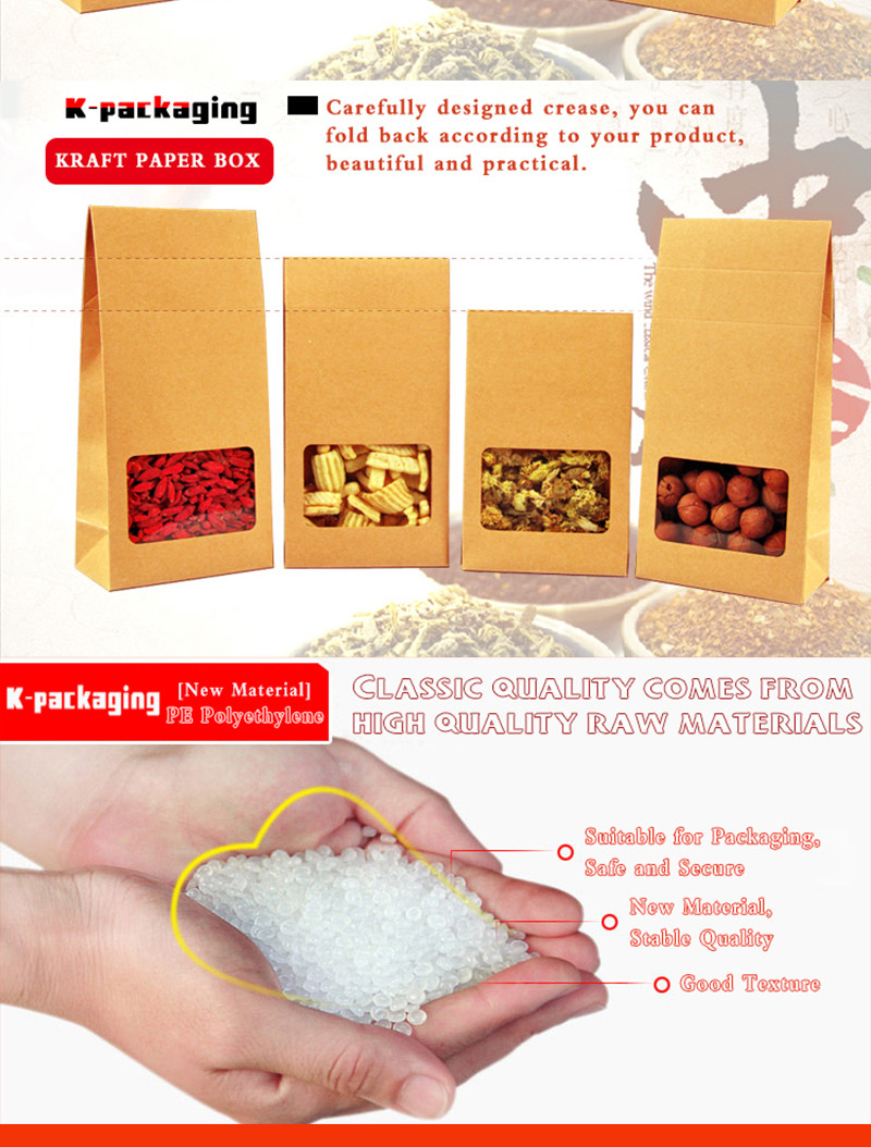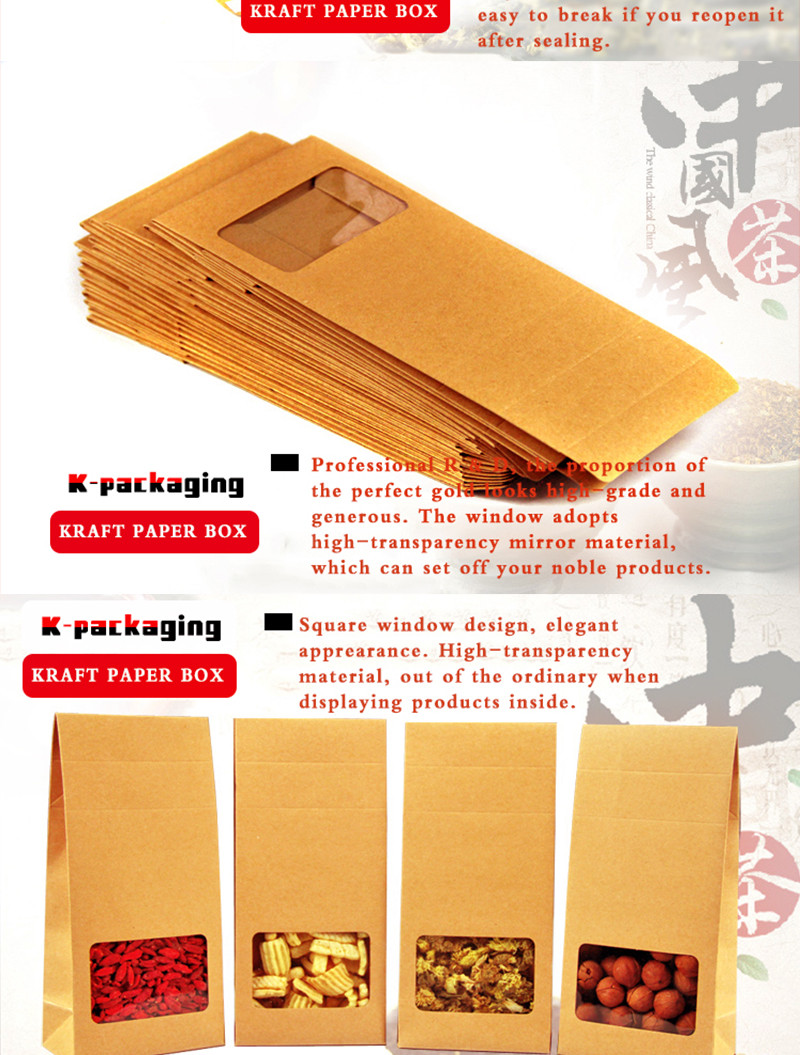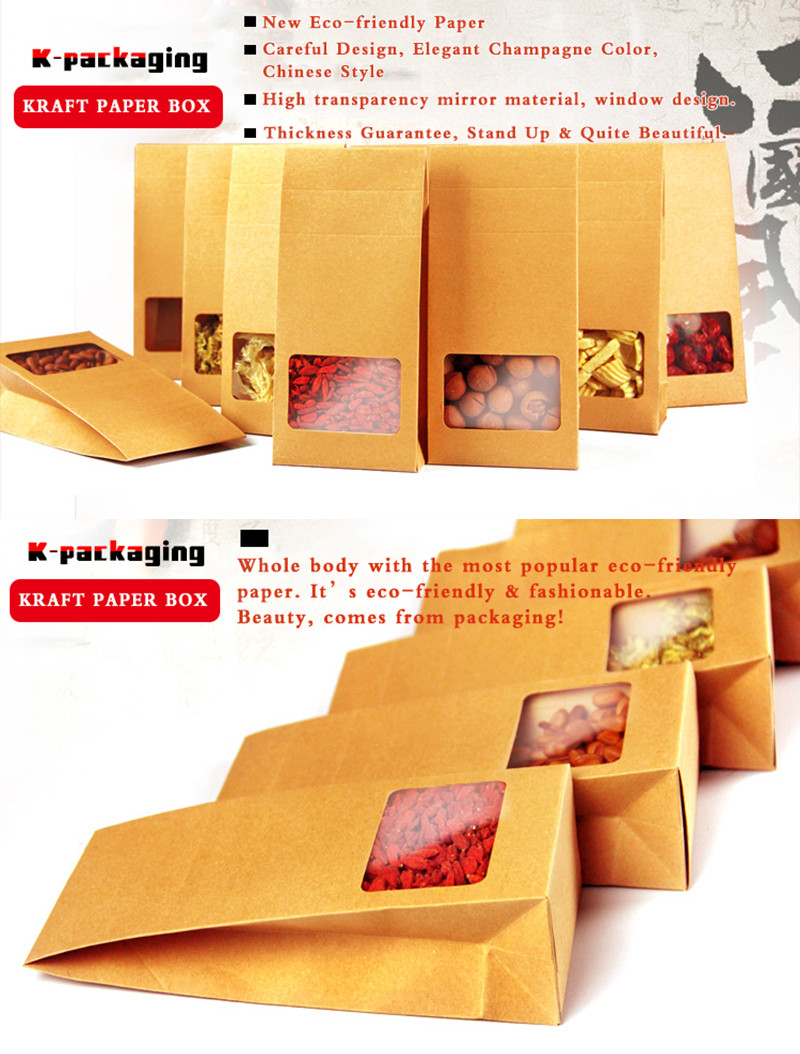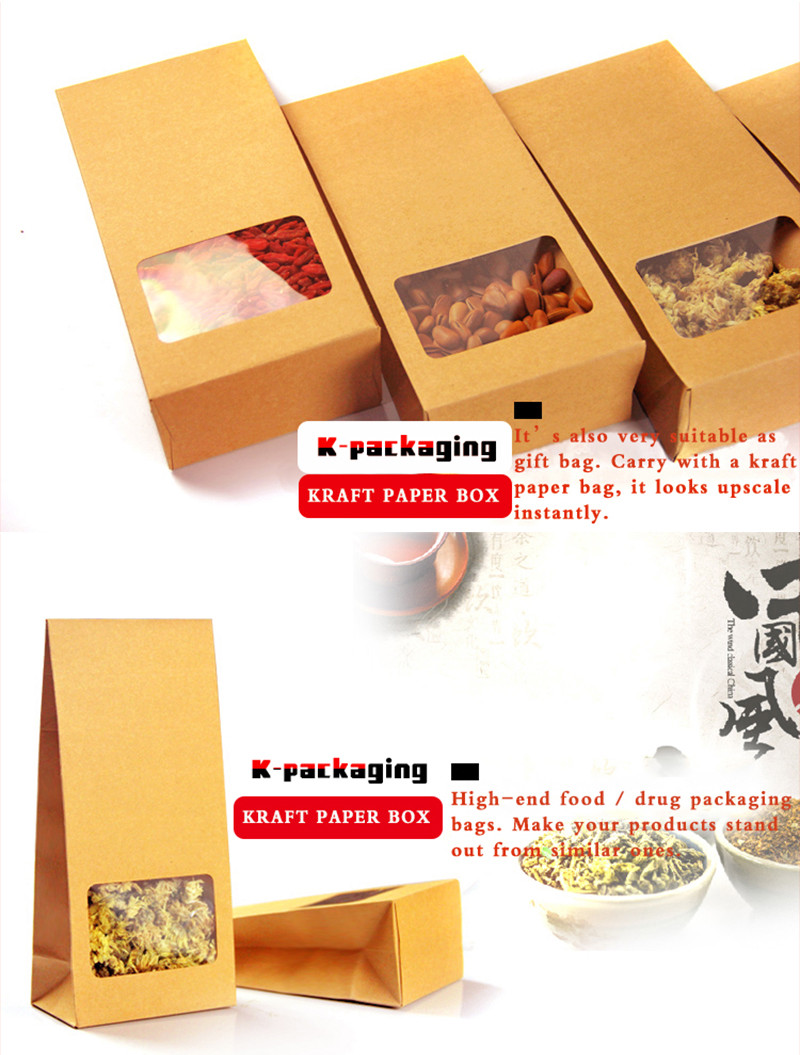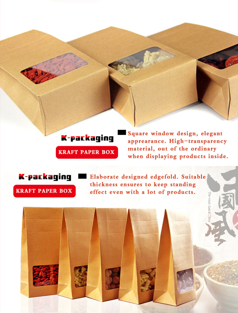 2015 Hot Sale Height Adjustable Self-adhesive Diy Craft Box / Kraft Paper Box With Clear Window For Food / Snacks / Nuts / Cand