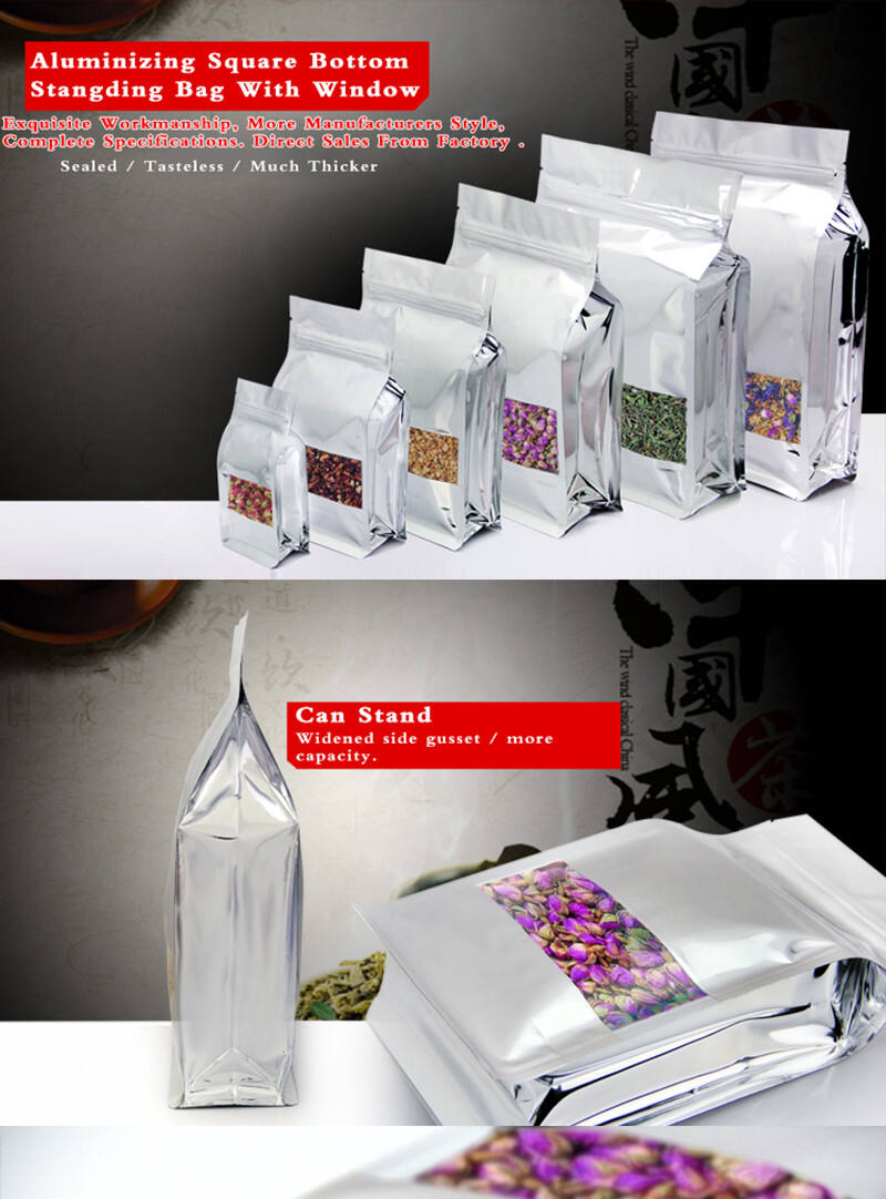 4) Front clear window can display your product. Glossy aluminium foil looks quite high quality. |