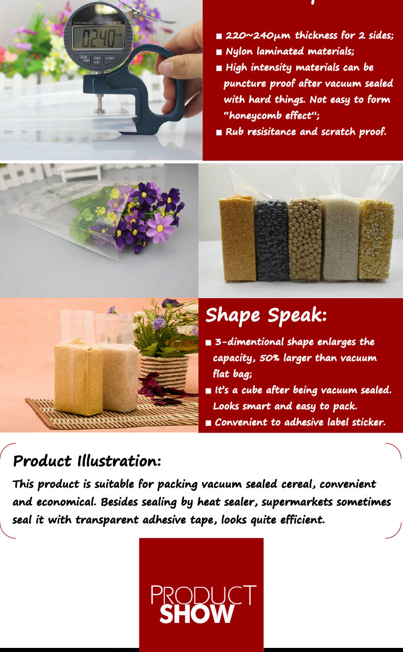 This product is generally used for rice & cereal vacuum packing. Can pack rice into brick shape. Strong and looks smart. |